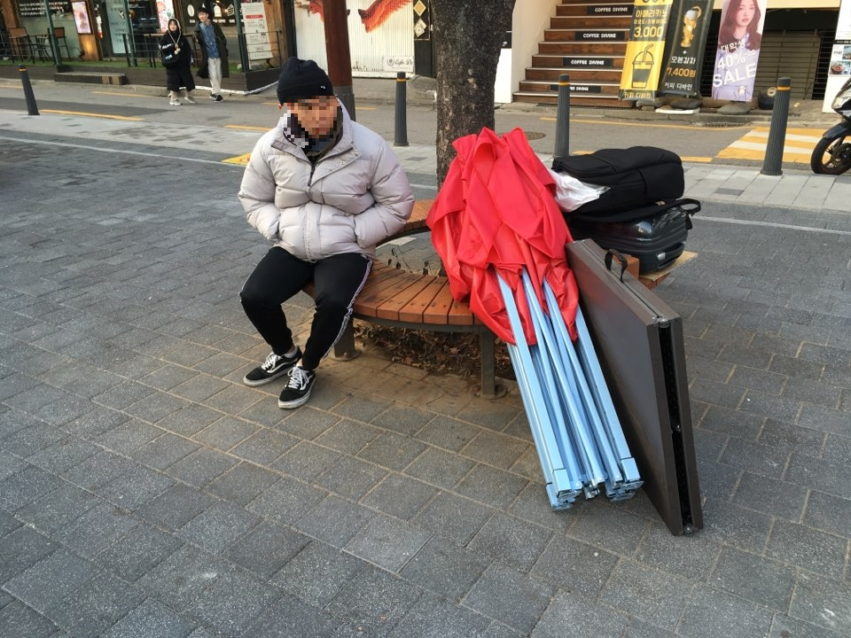 그런데 웬걸 우리가 후보지로 정한 장소 몇 군데가 전부 다른 부스들로 가득 찼다. 적십자사 혈액도네이션부스센터, 행사부스 같은 것들이 거리를 가득 메웠다. 우리가 생각한 플랜 A, B가 모두 막혀 버렸다. 할 말을 잃었다. 길거리장사이기 때문에 우리가 장소 전세를 낸 것도 아니라서 주장할 권리도, 할 말도 없었지만 너무 당황스러웠다. 우리가 비 짚고 들어갈 틈이 없었다.